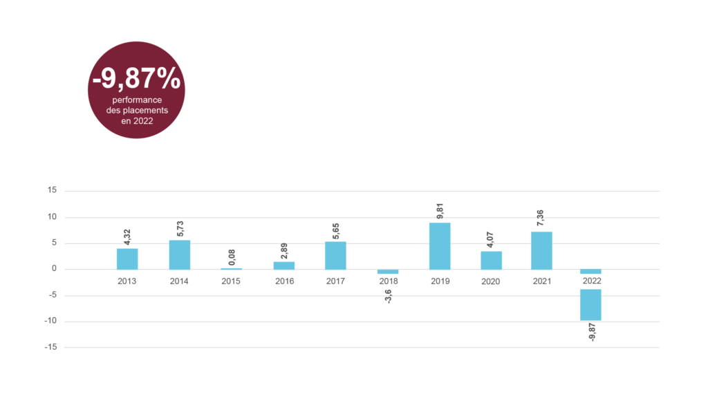 La réserve de fluctuation de valeur ainsi constituée nous a permis d’absorber les chocs boursiers, relativement fréquents ces dix dernières années (2011, 2015 et 2018). Malgré ces fluctuations importantes des rendements, notre degré de couverture a toujours été supérieur à 100%.